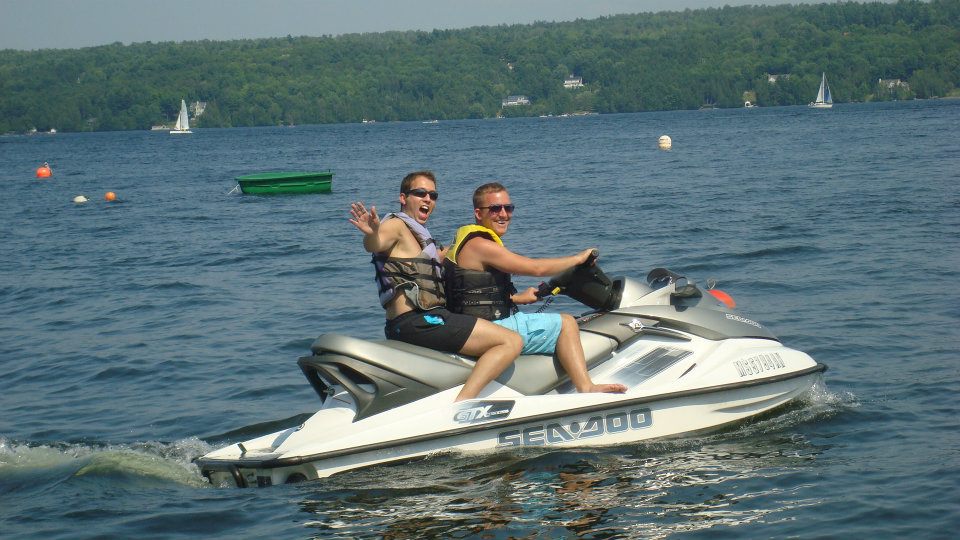 Durant la journée, on a profité du lac. On a fait du kayak en double ou en solo et cette fois-ci les jet-skis étaient opérationnels ! Scott s'est essayé à la planche !